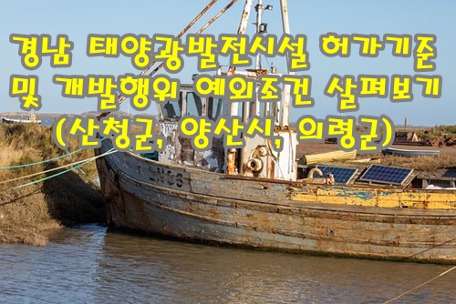 | 경상남도 태양광발전시설 허가기준 조례 및 개발행위 예외조건 살펴보기(진주시, 창녕군, 통영시) (0) | 2024.05.10 |