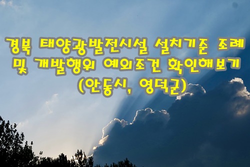 | 경북 태양광발전시설 설치기준 조례 및 개발행위 예외조건 확인해보기(문경시, 봉화군) (0) | 2024.04.22 |