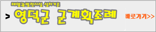 ☞ 영덕군 군계획조례 제20조의 3에서 태양광발전시설 허가기준을 바로 확인하실 수 있습니다.