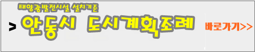 ☞ 안동시 도시계획조례 별표28에서 태양광발전시설 허가기준을 바로 확인하실 수 있습니다.