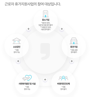 근로자 휴가지원사업 지원대상은 중소기업, 중견기업, 소상공인,