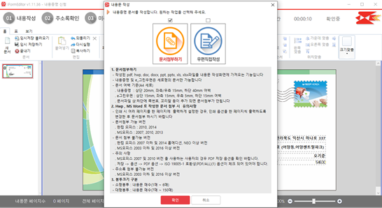 본문작성 버튼을 누르면 내용증명 문서 편집툴이 나타납니다.