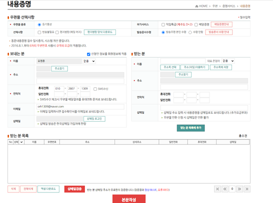 우체국을 가서 발송한 내용증명의 배달 날자 및 수취인을 증명하는 증거자료를 남기기위해