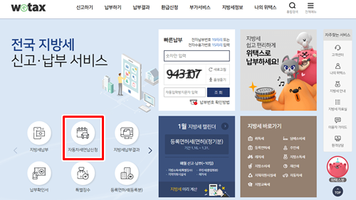 자동차세 연납신청은 위택스(www.wetax.go.kr)에 접속하셔서