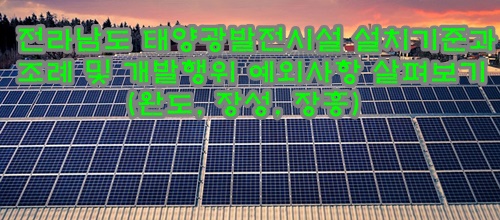 | 전라남도 태양광설치기준과 조례 및 개발행위 예외조건 살펴보기(해남군, 화순군) (0) | 2024.04.01 |